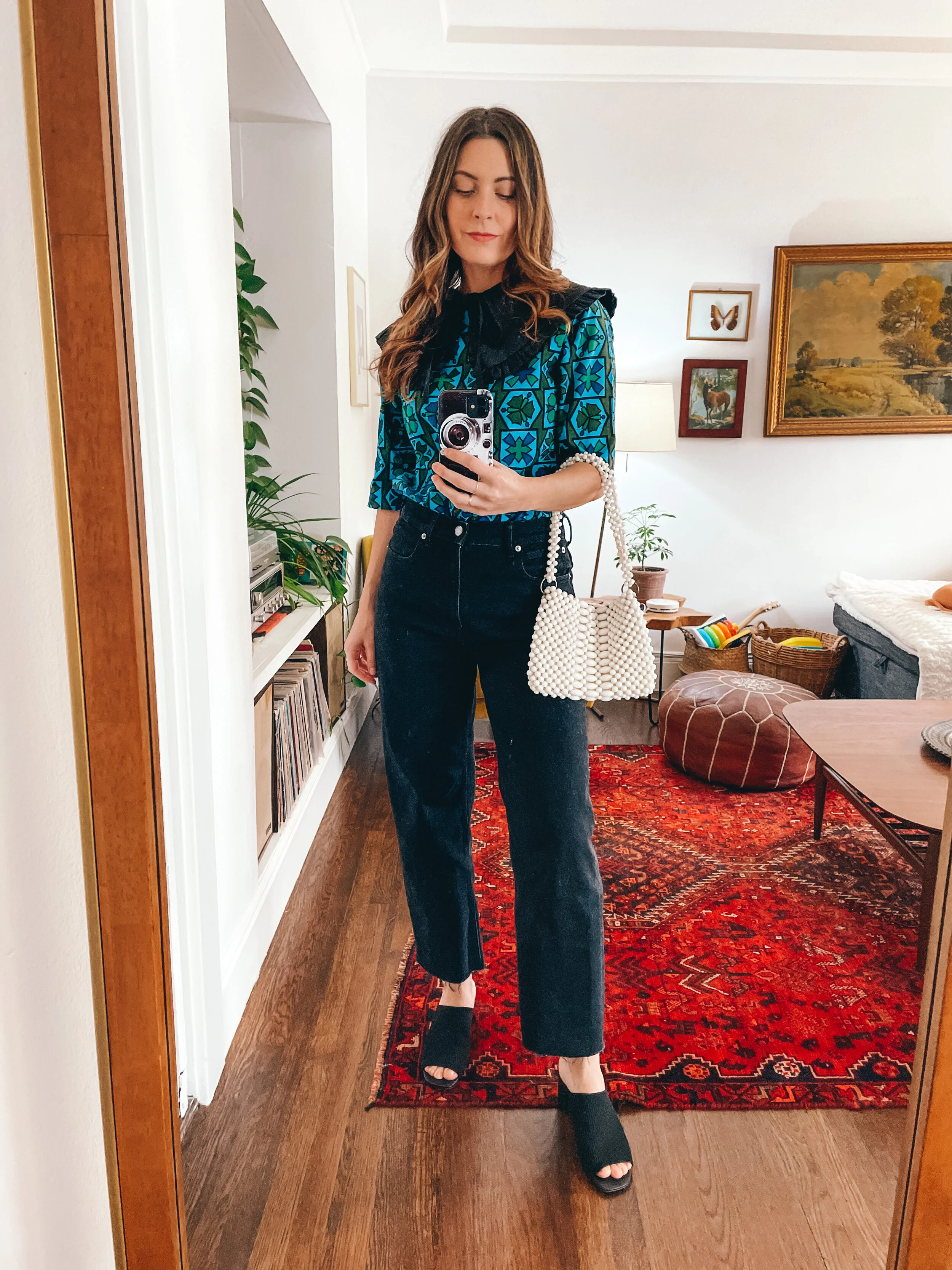 One downside of the Ribcage is that they have sooo many different versions of it now which makes it hard to decide which pair will be the best fit for you. I’ve tried a couple of different styles and not all are created equal. My personal favorite the Ribcage Straight Ankle Jean in Jive Swing isn’t available in the jive swing wash anymore, although there are a variety of other washes. I’ve also purchased some secondhand that were a wide leg cut (pictured here) and I ended up having to taper the leg a little bit because the wide leg wasn’t wide enough to be a true wide leg (they ended up just kind of looking too baggy on). I really like that there are less options in silhouette with the Everlane Way Highs. You know exactly what the fit will be no matter what wash you choose. However, if you aren’t particular about a straight leg style, you might want to explore all the silhouette options of the Ribcage Jeans!