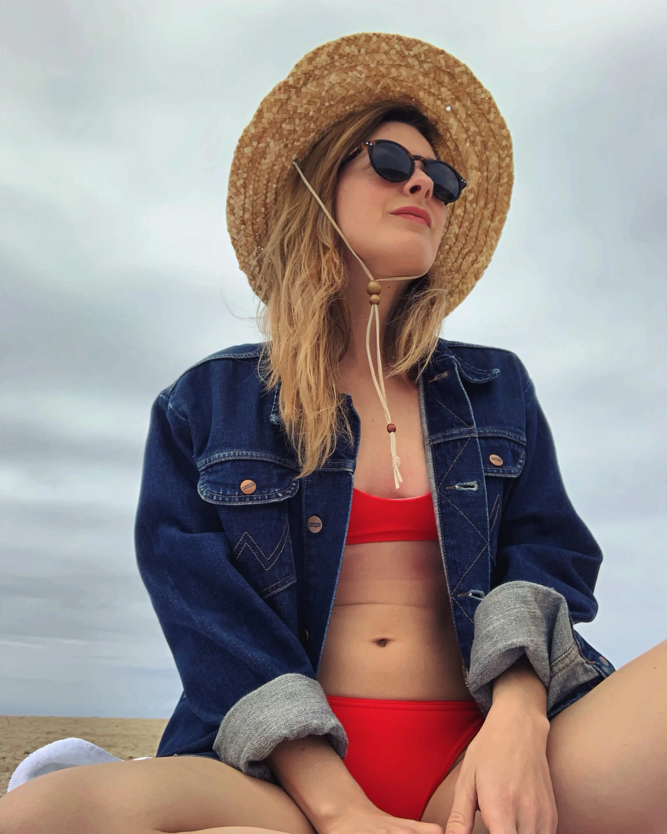 I prefer my Jean jackets to be 100% cotton with no stretch. Denim jackets can look better and better over time as they break in and mold to your body. I love the unique look of denim jackets when they are broken in. My favorite ones are the ones you can tell have lived a good life. My favorite denim jacket is a vintage dark wash Wrangler jacket that I got when I was in Spain. I also love my husbands vintage Levi’s jacket that fits me in a fun oversized slouchy style. I wear both of them depending on what look I’m going for that day.